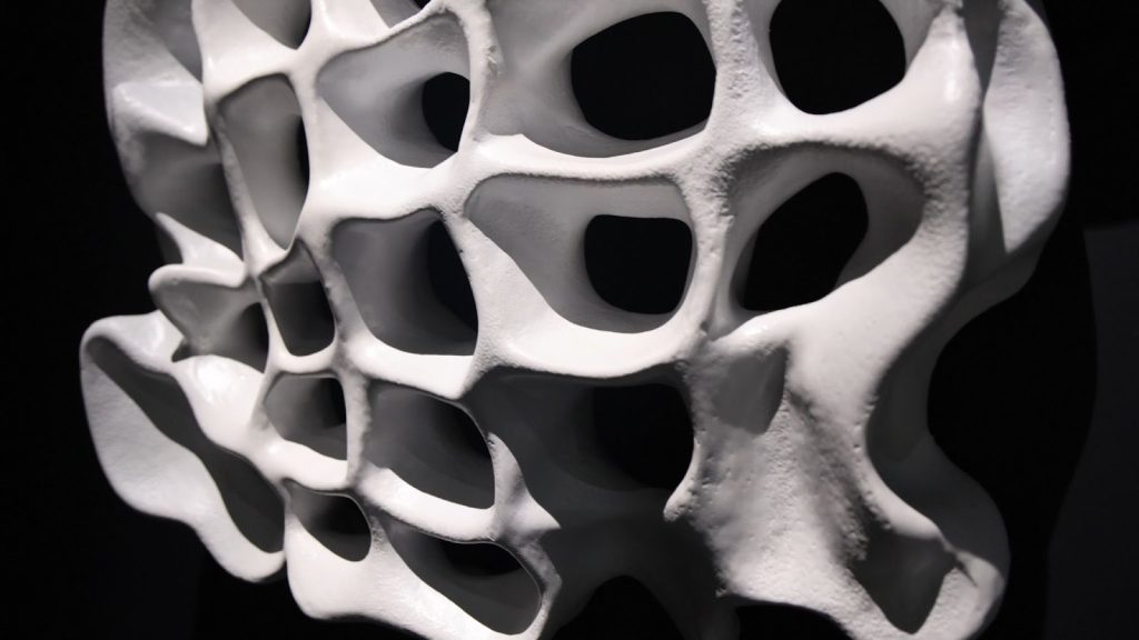 この理論を具現化するため、彼はサグラダ・ファミリアの設計において、無数の紐と重りを用いた「逆さ吊り模型」を製作し、人知を超えた複雑な曲線を導き出しました。こうして生まれた放物線的な曲線は、さらに高度な「サドル形状(双曲放物面)」へと発展していきます。ガウディ建築を支える複雑な曲線は、実は「直線」を用いて作られた双曲放物面などの幾何学的形状にもとづいているのです。直線的なフレームをひねるだけで、構造的に強固で豊かなニュアンスを持つ曲面を生み出すその手法は、機能と美が完全に一致した究極のしつらえといえます。