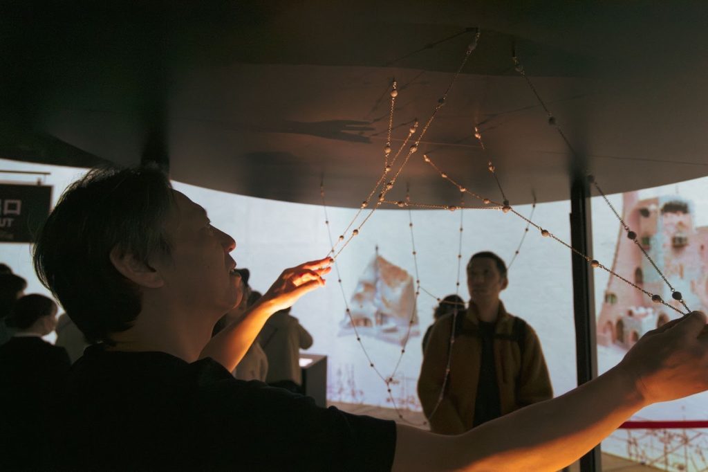 NAKED meets ガウディ展はプロジェクションマッピングやインタラクティブアートなど、現代技術を用いて没入体験とともにガウディの思想を疑似体験できる仕組みがあります。多くのパネルや手記からも、ガウディの秘密が学べます。改めてガウディの育った環境や思想を学ぶと、畏怖の念さえ覚えるガウディ建築の美しさは、単なる「曲線美」「デザイン性」といった既存の枠組みでは、その本質を捉えきれないことに気づかされます。自然の力や重力という、目に見えない力と対話し続け、自然界の摂理を幾何学へと翻訳し続けたひとりの「文創者」の格闘の記録そのものともいえるのではないでしょうか。
