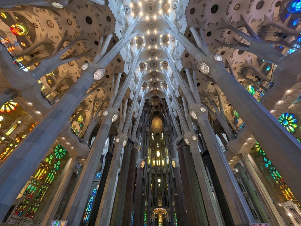 ガウディは「自然界に単調で一様なものは存在しない」と断言します。たとえば、彼にとっての「色」とは、単に表面に塗られた顔料ではなく、素材の成り立ちや光との関係から立ち上がる「現象」を指します。木の葉や岩、地形を単に模倣するのではなく、そこにどう力が流れ、どう形が生まれ、どう時間がつみ重なって風化していくかという「動的なロジック」を読み解くことなのです。サグラダ・ファミリアで目を引く、樹木のように分岐する柱は、自然がすでに解いていた構造の答えを、建築という言語で言い換えたものとも言えるでしょう。