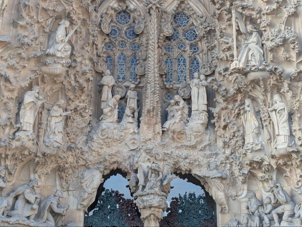 交通が発展しさまざまな商業施設が増え続ける都会、バルセロナの中心にサグラダ・ファミリアは突如現れます。どこまでも見上げ、視線を外せない、その圧倒的なスケールと密度に、言葉を失うほどの衝撃が体中を駆け巡ります。