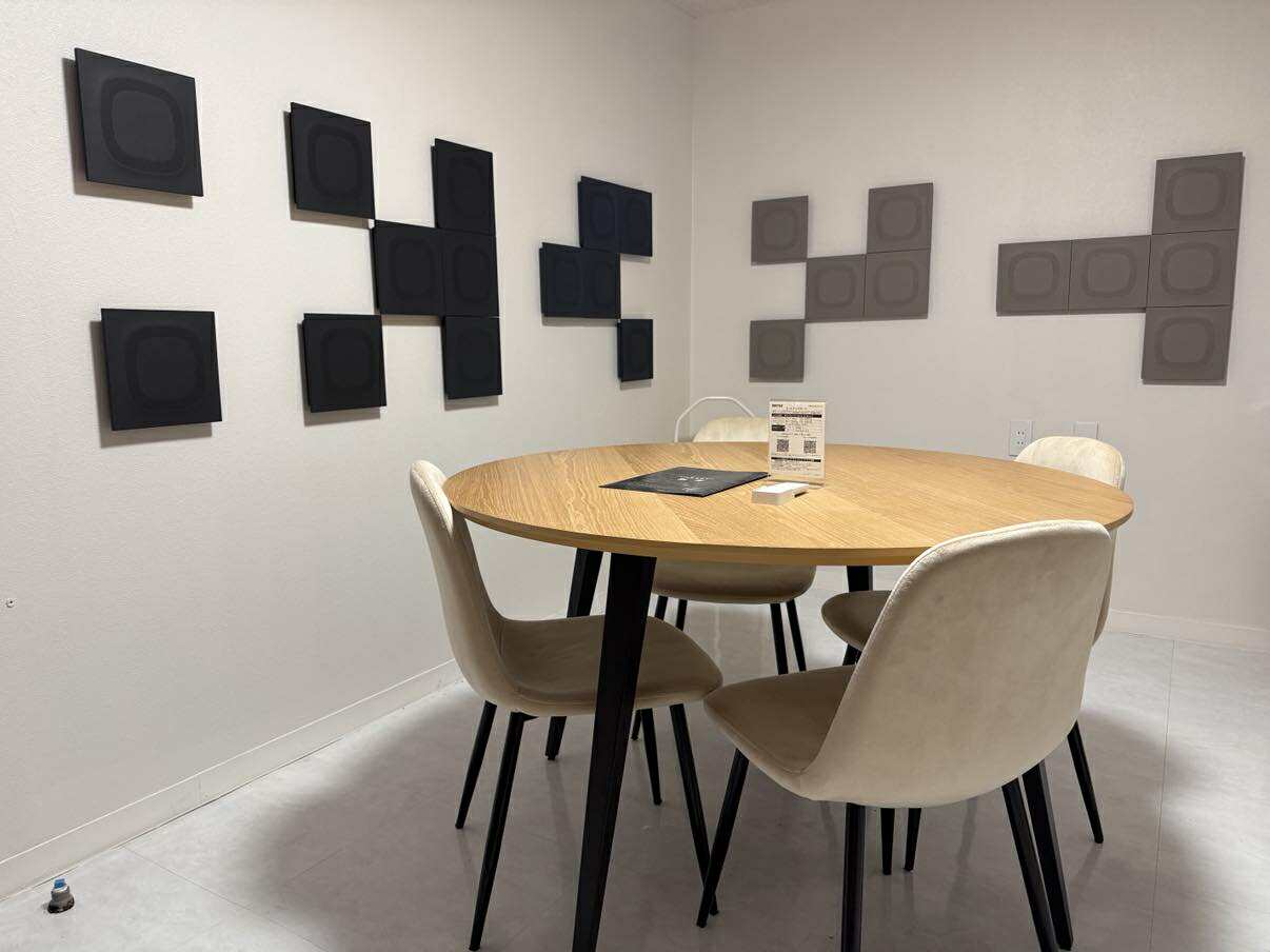 サテライトオフィスには、WPA3-A対応の高速Wi-Fi環境を整備。さらに、落合陽一氏のピクシーダストテクノロジーズ社が開発した吸音パネルを共有ルームへ導入しました。これにより、オンライン会議のハウリングを防ぎ、高い集中力を維持できるよう設計されています。